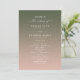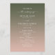 Simple Ombre Dark Green & Pink Wedding Ceremony Program. This modern minimal Order of Services Card is simple classic and elegant with a subtle ombre gradient fade and a pretty signature script calligraphy font with tails. Shown in the Chic Ombre Dark Green & Pink Colorway. Also, optional custom photograph on the backside. Available in several colour options, or feel free to edit the colours from within the editor (click customise further while personalising).