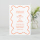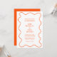 Contemporary wedding invitation featuring a fun design with your event details in a simple layout inside of a hand drawn squiggle frame. The colour palette is orange over a white background and may be changed in the design editing tool. The organic shape of the wavy frame and the bold and bright colour of this invitation makes it a great choice for a modern wedding.