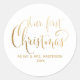 Simple Our First Christmas Newlyweds Gold White Classic Round Sticker