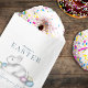 This design features a simple easter bunny cute holiday, an Easter bunny classic party supplies, a minimalist minimal classic spring, great for party favour dessert treat, an Easter holiday party gift gifting, a traditional easter rabbit animal, a traditional pastel coloured easter eggs, a cute adorable white fluffy bunny, an classic easter spring typography, an elegant vintage classic easter bunny
