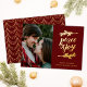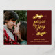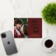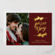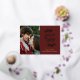A beautiful photo holiday card featuring evergreen branches and the words Peace & Joy is a stylish hand lettered typeface. The back of the card features a faux gold scalloped background on burgundy. Personalise with your photo, message and names. Remove the back background and replace the colour easily in the Design Tool.