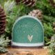 This minimal simple dove and heart - peace and love Christmas snow globe makes a positive and hopeful message for Christmas. The deep green back ground with the gold designs and words makes the ornament look rich and stylish. There is room to include your photo in a heart shape with your names and the year on the back. Giving a Christmas photo snow globe to loved ones every year can become a tradition which ensures that decorating the tree will be a trip down memory lane every year.