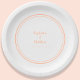 Simple Peach White Modern Bride & Groom Wedding Paper Plate
