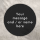 Simple modern personalised add your own message and name black and white classic round sticker. Designed by Thisisnotme©