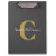 Simple Personalised Clipboard with Monogram and Name in Black and Gold