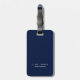 A small and white aeroplane and the name of the stylish traveller, discreetly printed on a dark blue bag tag... custom text "travel the world"... a nice idea to help identifying your bags when travelling.