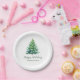 Simple personalised tree Christmas plate. Easy to change the text. Pretty watercolor design for the holiday season.