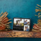Simple and unique father's day photo keepsake plaque featuring 3 photos of yours with a typography text mixed with script and serif text below that says "best dad ever."