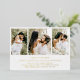 Elegant wedding invitation with a modern and minimal design featuring a photo collage with three of your favourite pictures at the top and your event details in a minimalist layout. The text is in real foil over an off white background and any of the text and / or background may be changed to any colour ink you choose in the design editing tool. This simple yet elegant invitation with a neutral colour palette is great for any style of wedding.