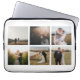 Modern laptop sleeve featuring a simple and minimal white design with a photo collage of six of your favourite wedding pictures. This elegant laptop is perfect for a newlywed bride.