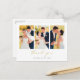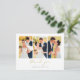 This simple, chic photo wedding thank you postcard template features a clean, modern design and space for three of your favourite photos. We've chosen a modern script in an elegant gold tone called Vegas Gold for 'thank you' on the front and the back. This part of the design can't be altered, though you can delete this element from the back if you prefer. You can change the colour and font of any other text to suit your style. We've set the background on the back as transparent, so that the base colour will simply be the colour of the paper. You can change this by choosing a colour instead. On back, the default text colour is dark grey, but you can change this if you prefer another colour. This is the same colour we've used for your names on the front. After you delete our placeholder text you can replace it with your own message, or you might decide to simply leave the message portion on back blank after you delete our text, so that you can add a handwritten message with your signatures. In any case, please do remember to remove all of the placeholder text as well as our sample photos! Use the intuitive design tools and your favourite photos and your inspiration to personalise this custom wedding thank you postcard, and please check our shop for more ideas, including this design with 'thank you' in black and in flat card and folded card formats, too!