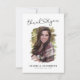 Minimalist graduation thank you cards featuring a simple white background that can be changed to any colour, a photo of the graduate, the words "thank you" in a elegant script font that incorporates a mortarboard cap, the grads name, school, year, and a personalised a thank you note.