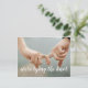 Nautical save the date postcard with your full bleed horizontal picture and a text overlay with the words, "we're tying the knot" in a white handwriting font. Below are your details in a single line of text. Add your return address and personal message to the back. A simple and modern design that makes your photo the main feature.
