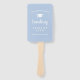 Modern graduation hand fans featuring "Congratulations" and a grad cap above the graduate's name in an elegant thick script handwriting along with the class year and school name in pastel blue over a white background. The backside has your favourite photo. You may change the background colour to any colour you wish. These hand fans are a great way to add a personal touch to your graduation party.