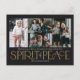 These simple holiday photo greeting postcards feature the greeting, "Wishing you a Merry Christmas and a Happy New Year," along with the greeting, “Spirit of Peace,” in large ivory and gold letters on an black background with placeholders to add four of your favourite photos, family name & the year.
