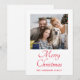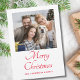 Simple photo red script Christmas holiday card. Easy to change the text and replace the photo with your own.