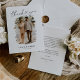 Minimalist wedding thank you cards featuring a simple white background, a photo of the bride and groom, the words "thank you" in a elegant script font that incorporates a love heart, their names, wedding date, and a personalised thank you note on the back.