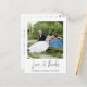 This modern wedding thank you postcard features the couple's photograph in a white like frame. I've used a hand written looking font called Isolente for the message to give the postcard a personal and casual feel. Both the front and back of this photo wedding thank you postcard is ready to be personalised. This thank you postcard is suitable for a couple looking for a modern causal like postcard. It's ready to be personalised.