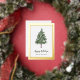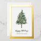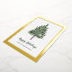 This minimalist holiday card says features modern script typography with a spot for your name. A simple, elegant watercolor pine Christmas tree adds a stylish and festive touch that is also professional enough for any business greeting. An elegant, real gold foil border adds luxe style.