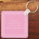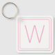 This simple and modern monogrammed keychain has a minimal monogram that you can personalise with your choice of initial on the front and contact information on the back in pretty pink and white.
