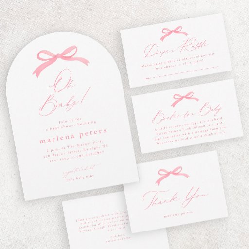 Simple Pink Bow Books for Baby Shower Enclosure Cards. Click the personalise the button to customise this design.