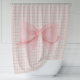 Simple Pink Bow Plaid Farmhouse Shower Curtain