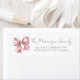 A simple and elegant envelope design featuring a delicate watercolor pink bow on the left side, with the name and address beautifully displayed on the right. The name is written in handwritten script calligraphy, while the address is in a classic serif font for a timeless look.