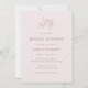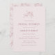 Simple Pink Bridal Shower Invitation. Romantic and timeless, this blush pink bridal shower invitation features vintage line art floral peonies that can be used for any wedding season. Add a touch of modern and classic elegance to your special day with these stylish and beautiful invitations. Dusty rose text on a pale pink background with a lovely coordinating pattern on the back.