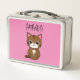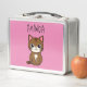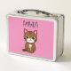 Simple Pink & Brown Cat Kids Name Metal Lunch Box