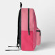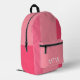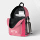 Three shades of pink are on this backpack. White text is on the pocket. You can edit the text to show the correct monogram.
