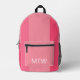 Simple Pink Colour Blocks White Monogram Printed Backpack