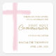 Simple Pink Cross First Holy Communion Thank You Square Sticker