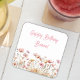 Simple Pink Floral Birthday Party Square Paper Coaster