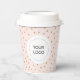 This minimal paper cup features a simple logo and brush confetti pattern on a blush pink background. Add your logo and customise the text with your information. You can use this personalised cup at your business place, shops, company event or, etc.