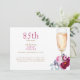 85th Birthday Party Invitation. White background. Champagane. and pink peonies. Woman's birthday.