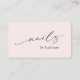 Modern blush pink business cards featuring a simple and minimal design with "nails" in an elegant calligraphy along with your name on the front. The back has your contact info along with social media icons and an optional QR Code in a minimalist layout. The QR Code may be removed and the social media icons may be changed or removed in the design editing tool.