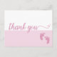 Simple Pink Script baby girl feet Thank You Announcement Postcard