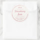 Simple pink and white sticker, nearly text only. Text for the contents, the year, and additional text for the manufacturer and location. White background, soft pink lettering. Two-tone for a sweet and clean touch.