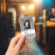 Name Badge featuring a gray colored ombre background, photo, barcode and logo template. Easily customize this badge to your brand. For additional customization easily drop me a message below. I would be more than happy to make your design wishes come true!
