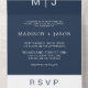 Simple Plain Navy Blue Monogram QR Code Wedding All in One Invitation