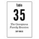 This understated and conservative table number card design features a custom table number, a personalised event name and a personalised event date. It could be used at a conference, a retirement party, or some other event with tables and seating.