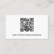 This plain white generic design business card has black text that you can edit to show the details about you and your business. Front: There are lines for your name, professional job title, business name, address, phone number, and website. Back: There's a QR code placeholder image and text you can edit to show your personalised message. (Remember to enter your Website URL for your QR code to work correctly.) All text on both sides can be edited or deleted.