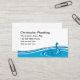 Plumbing service business card template in a simple water leak design and text layout you can customise for a plumbing contractor, water filter service, or independent Plumber.