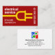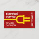 A bright red cover features a yellow power plug design. Over at the top lies the business name with your prestigious name at the base. At the end of the plug is the inverted contact details.