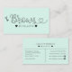 Simple Pretty Mint Green Hearts Typography Brows Business Card