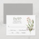Wedding RSVP Card depicts a simple design of pretty pink watercolor flowers with green leaves. The back of the card is dusty grey. It features accepts, declines and meal choices.*