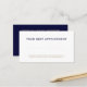 Ensure your clients never miss a meeting with our simple professional appointment reminder cards. Featuring a timeless navy blue and gold colour scheme, this customisable card is perfect for attorneys, law firms, estate planners, financial advisors, and any professional service firm. The minimalist design provides ample space for essential details, while the classic typography exudes sophistication and trust. Whether you’re in law, finance, or other professional services, this versatile card can be tailored to suit your brand's unique identity. Stand out with a design that reflects your commitment to excellence and personalised service.