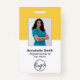 Standard yellow employee ID badge with name, title, ID number or other info and your logo below your photo. The back has your contact info and bar code or QR code. This professional design is great for a small business, hospital or any corporate business.