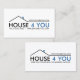 A two sided real estate business card design. The real estate business card is showing a black line which is forming a house logo together with the real estate business name and contact details. The main colours for the real estate business card are white, black and blue. This design will work perfectly for a builder as well as real estate agents and agencies.