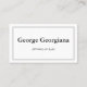 This professional, simple and minimalistic business card design features a triple-line border, and could work well for somebody in a conservative profession such as law, perhaps working as an attorney, paralegal, or judge. The details on the front and back of the card can be personalised.